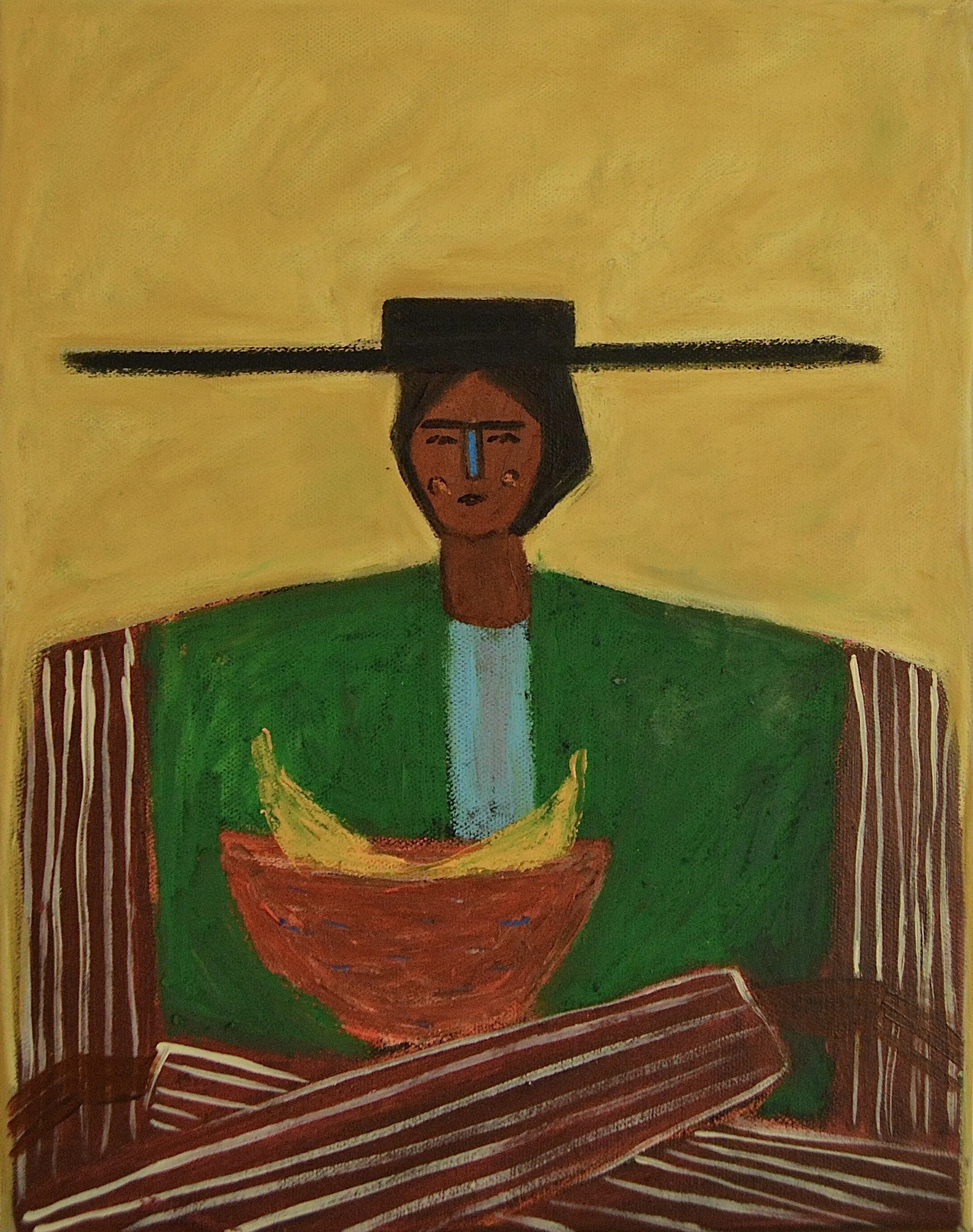 Aqui En La Tierra, 2024, Acrylic and Oil Pastels on Canvas, 12"x16" (30.48 x 40.64cm)